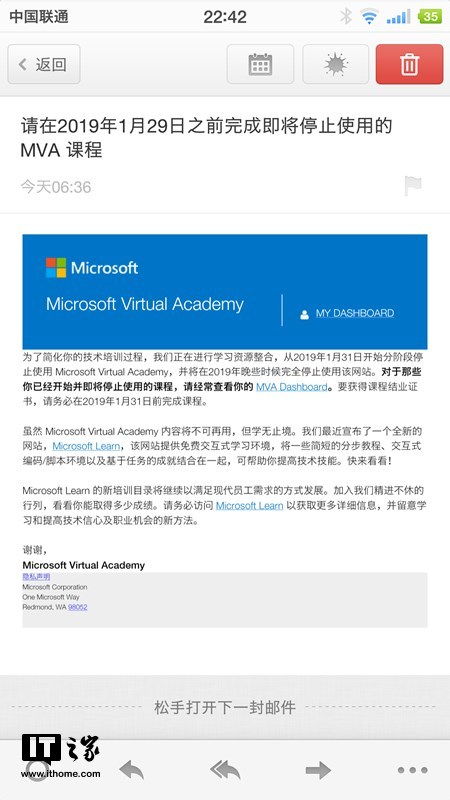 12月23日消息近期,收到微软邮件通知,微软虚拟学院(Microsoft Virtual Academy)将从2019年1月31日开始分阶段停止使用,最终会在2019年晚