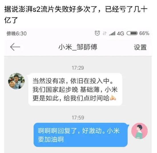 今日,小米公司产品总监王腾微博回答网友提问时称,澎湃芯片仍然在做,并不像大家想的那样“黄了”。