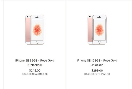 从美区官网的产品信息看,本次被重启销售的 iPhone SE 分别有 32GB 和 128GB 两个版本,售价分别为 249 美元和 299 美元(约合人民币 1687 元和 2026 元)。和此前发售的版本一样,苹果仍然提供了黑、银、香槟金、玫瑰金四种颜色可供选择。